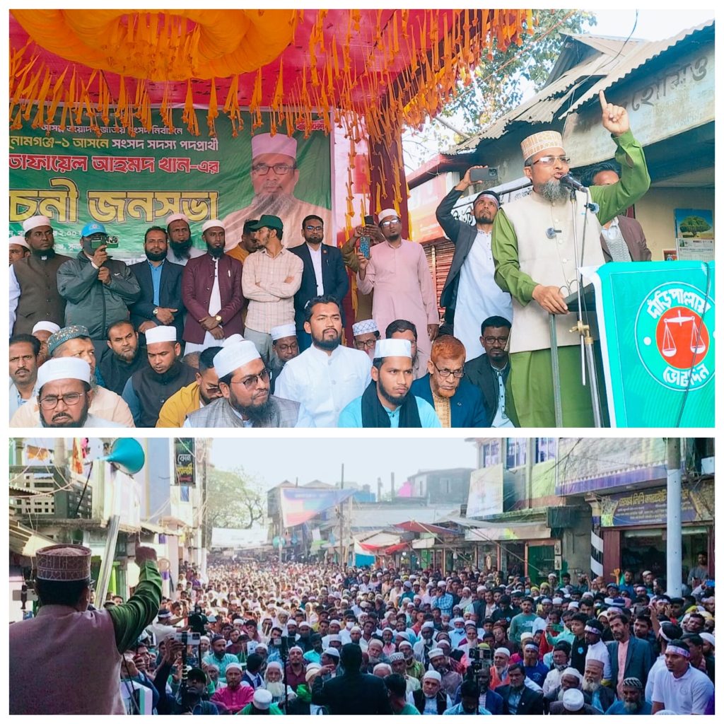 জনসমুদ্রে রূপ নিল জামালগঞ্জ: জামায়াতে ইসলামীর প্রার্থী তোফায়েল আহমদ খানের নির্বাচনী জনসভা