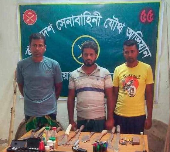 অভিযানে পুরুলিয়া গ্রামের সুলতান শেখের ছেলে মোঃআনিস শেখ (৫০), মৃত আব্দুর রাজ্জাক এর ছেলে নাজিম উদ্দিন শেখ(৪৫), মৃত এনামুল মোল্লার ছেলে মোঃচঞ্চল মোল্যা(৪৫) কে আটক করা হয়।